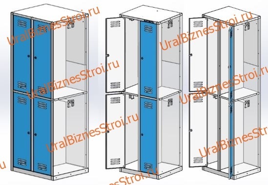 • Каждая секция оснащается полкой для головных уборов,перекладиной, 4 крючками для одежды. Все шкафы имеют возможность крепления между собой в ряд.