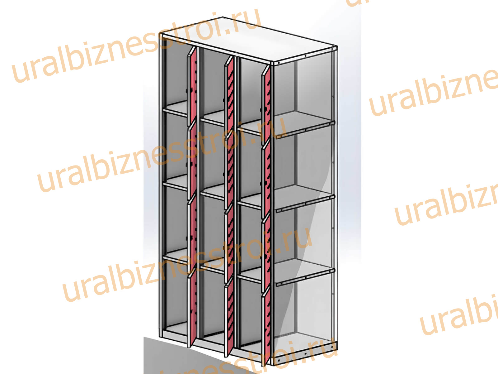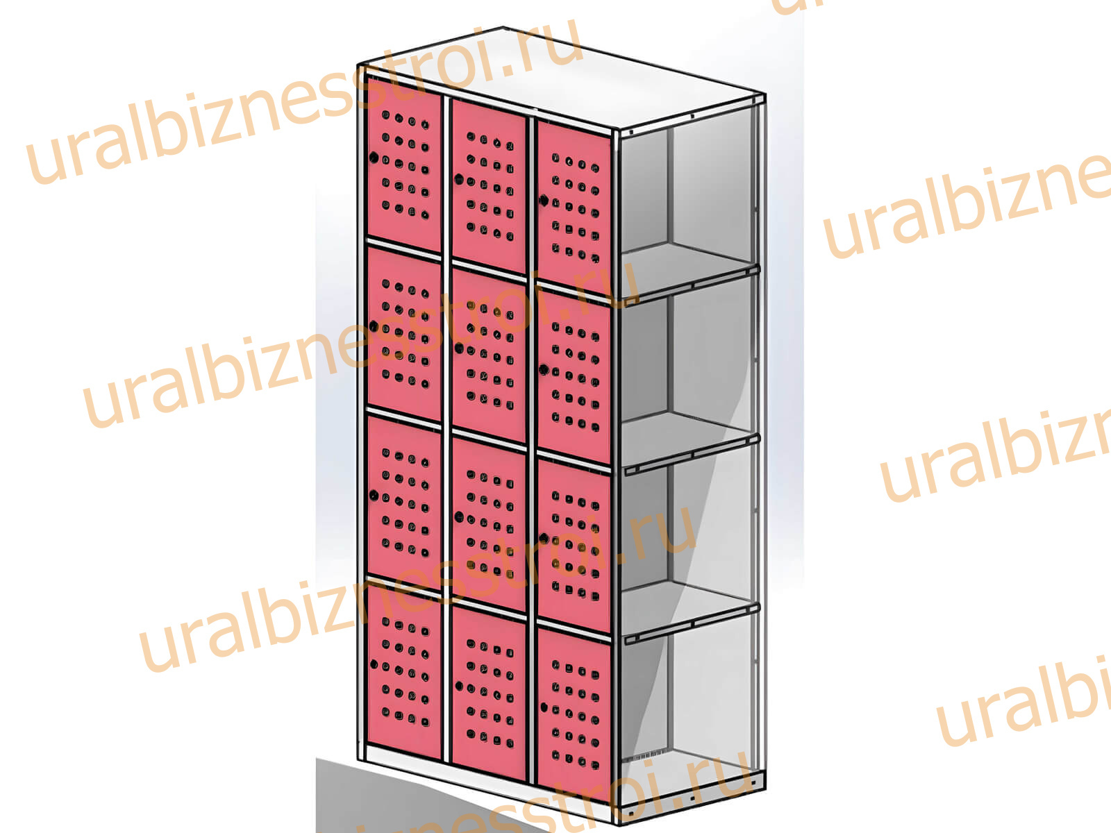 • Шкаф состоит из 4 секций,с 12 ячейками.
