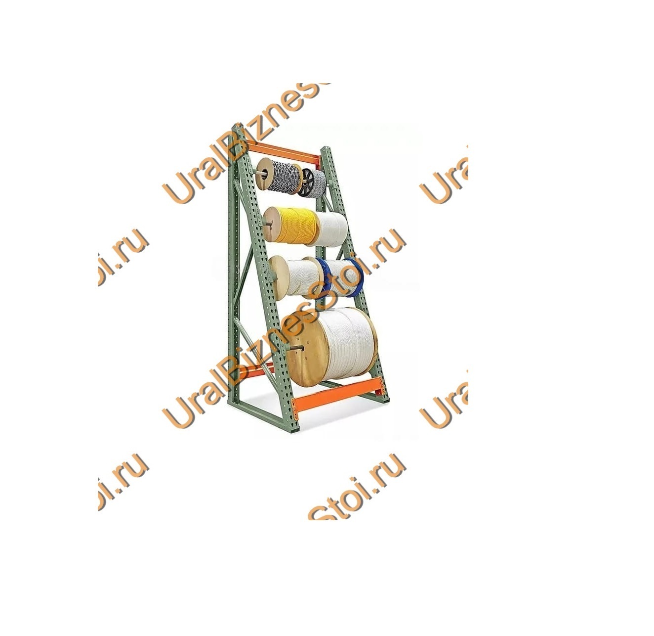 Каталог Стеллажи металлические Стеллажи для склада Кабельные стеллажи Наклонные кабельные стеллажи на базе паллетных стеллажей Стеллаж для кабельных барабанов 2000*1000*1050 мм на 4 барабана