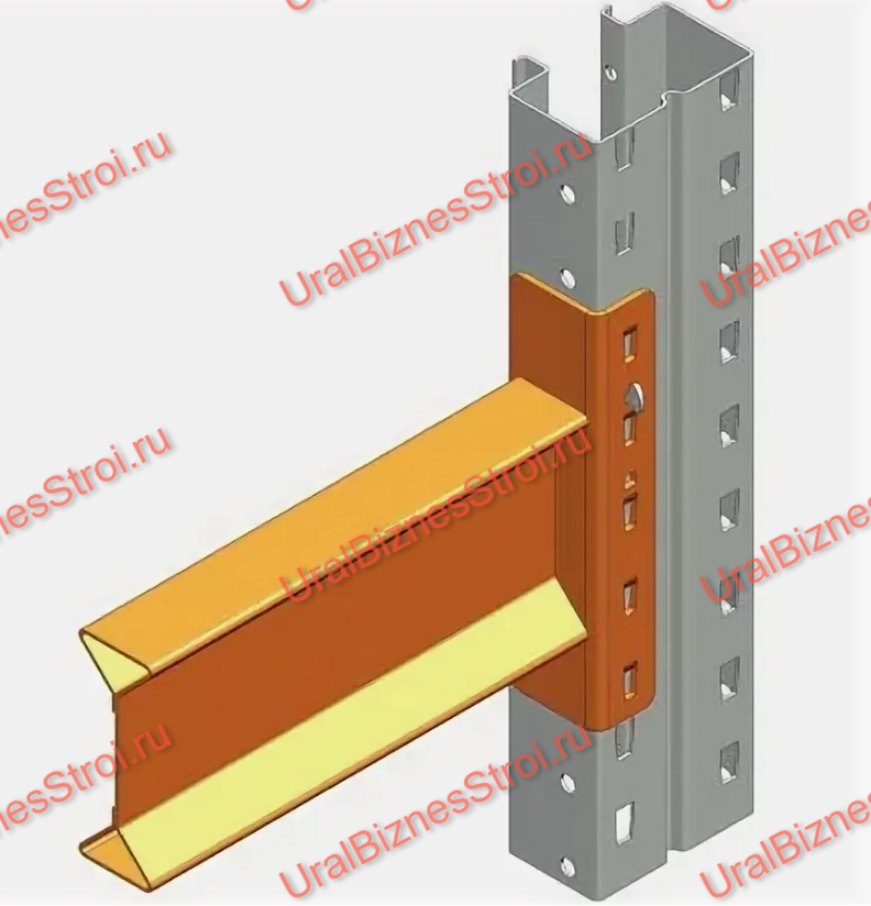 - Секция – состоит из рам и балок. Балки крепятся конекторами (зацепами) к перфорированным стоикам и для избежания выбивания балки устанавливаются фиксаторы. Балка бывает двух типов профиля: «К» коробка и «В» восьмерка, так же при малых нагрузках изготавливаем Z (образную) балку, для экономии вашего бюджета. Размеры профиля балки бывают от 75х50 мм до 155х50, толщина металла 1,5 мм или 2,0 мм, подбирается в зависимости от нагрузок. Стандартный цвет балок оранжевый, синий, белый и серый, но по желанию заказчика можем покрасить в любой цвет по каталогу RAL.