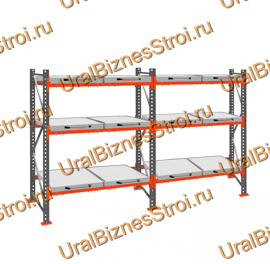 Стеллаж с выкатными платформами 2000*3600*1050 3 яруса 12 платформ