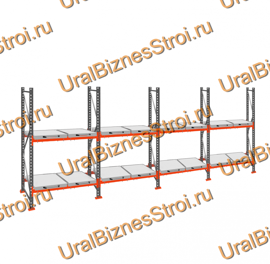 Стеллаж с выкатными платформами 2000*7200*1050 2 яруса 16 платформ