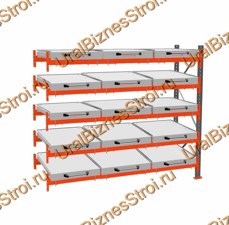 Стеллаж с выкатными платформами дополнительная секция 2500*2700*1050 5 ярусов 15 платформ